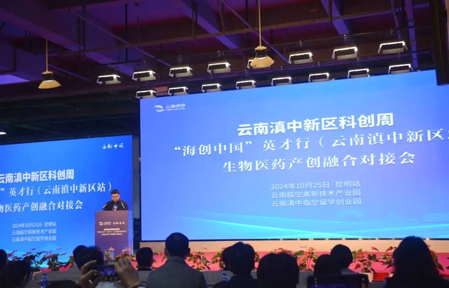 10月25日,由中國技術創業協會留學人員創業園工作委員會、云南滇中新區管理委員會共同主辦的“海創中國”英才行(云南滇中新區站)生物醫藥產創融合對接會活動在云南臨空高新技術產業園展覽中心成功舉辦。科技部、工信部有關部門領導,各地留學人員創業園代表,中國海歸創業大賽優秀項目團隊和企業代表,云南滇中新區有關部門及科技產業園區、骨干企業、投資機構等相關單位代表200余人參會。