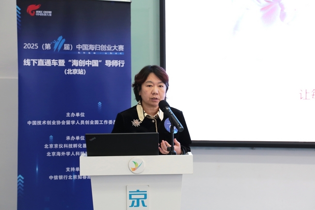 5月9日下午,2025(第11屆)中國海歸創業大賽線下直通車暨“海創中國”導師行(北京站)活動在京儀科技孵化器(中關村京儀留學人員創業園)成功舉辦?;顒佑芍袊夹g創業協會留學人員創業園工作委員會主辦,北京京儀科技孵化器有限公司、北京海外學人科技發展中心承辦,特邀華能長投、凌霄資本、長赫投資、清控科創、長城戰略研究所等機構現場觀摩。留創園工委會執行秘書長劉洪志、京儀集團副總經理王莉、京儀科技孵化器董事長楊曉霞出席活動。