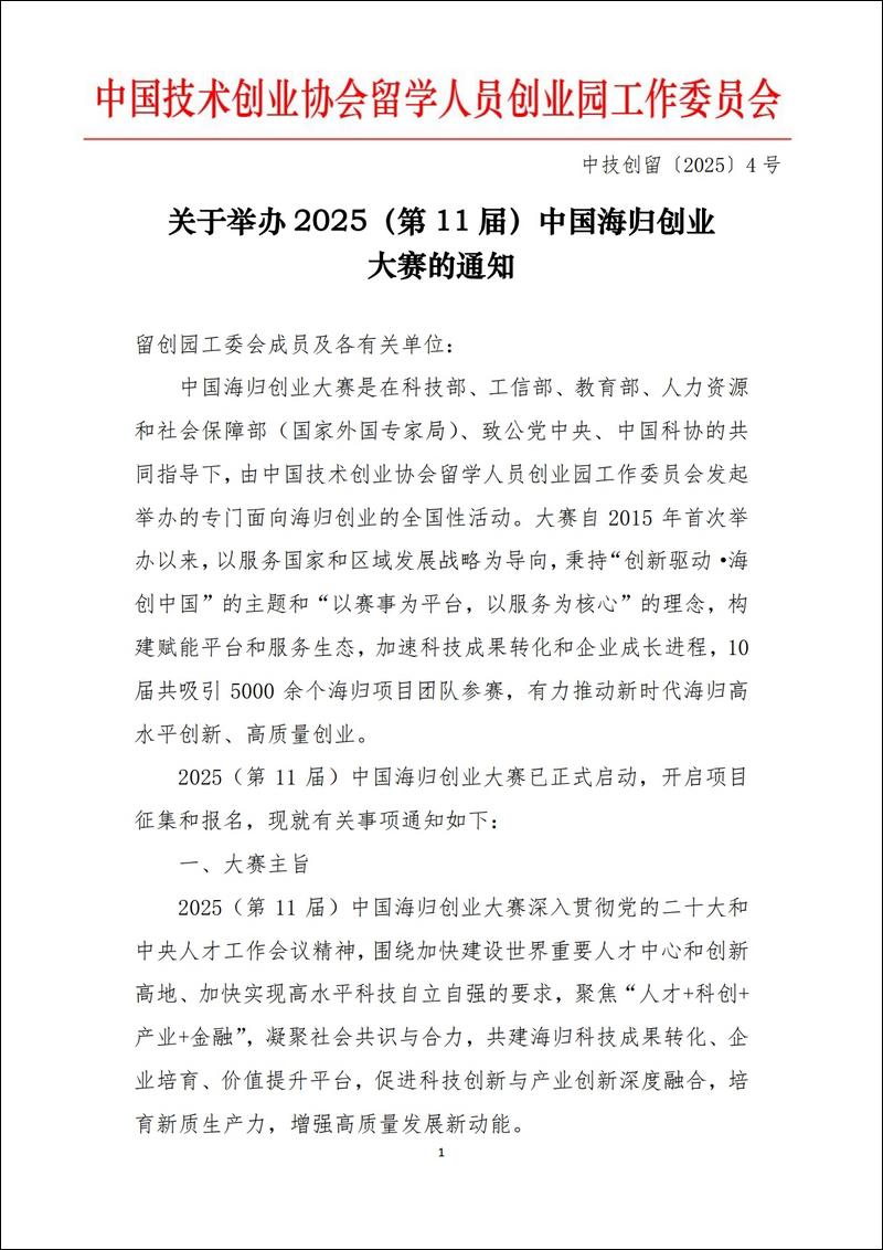 關于舉辦2025(第11屆)中國海歸創業大賽的通知